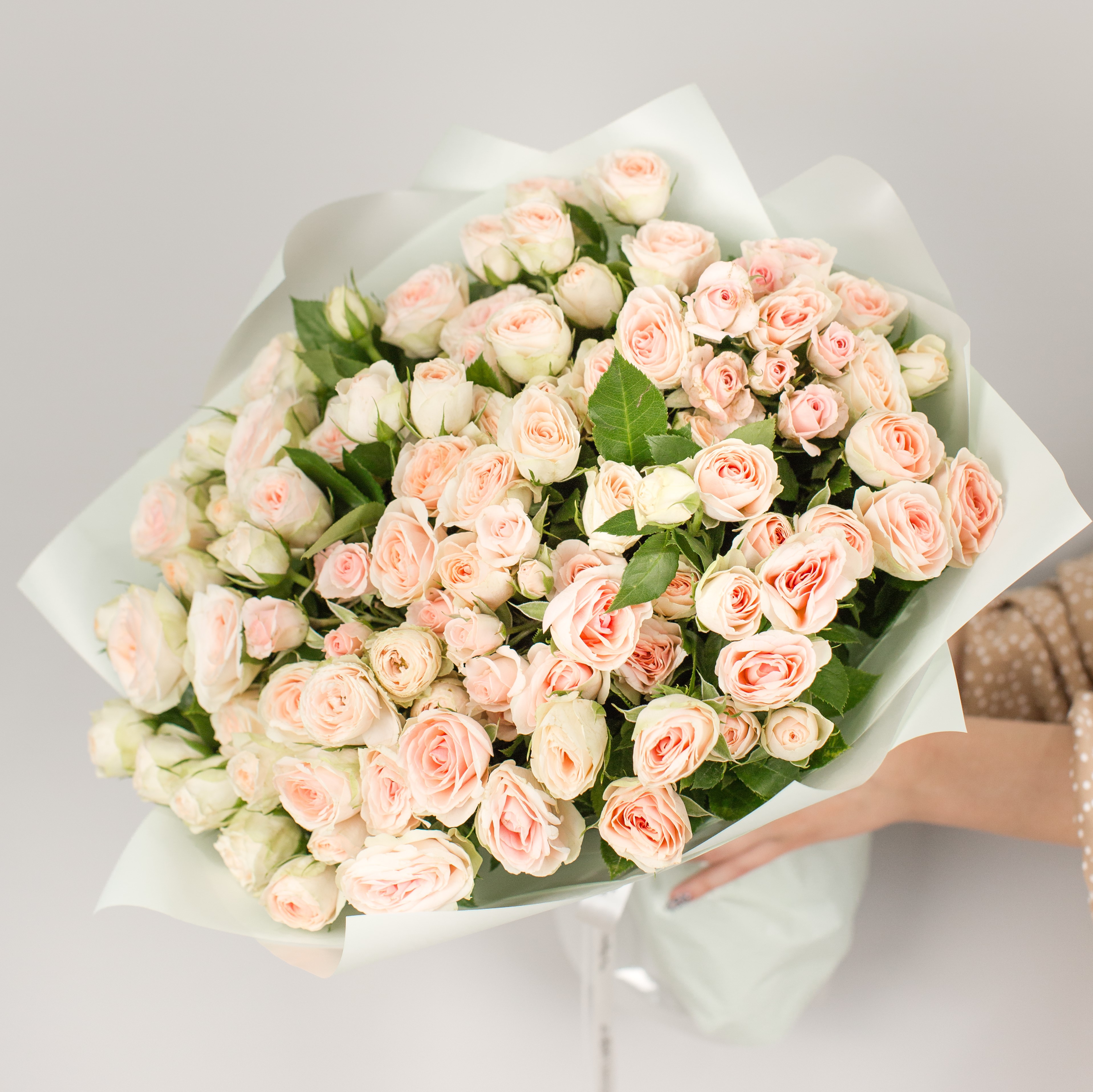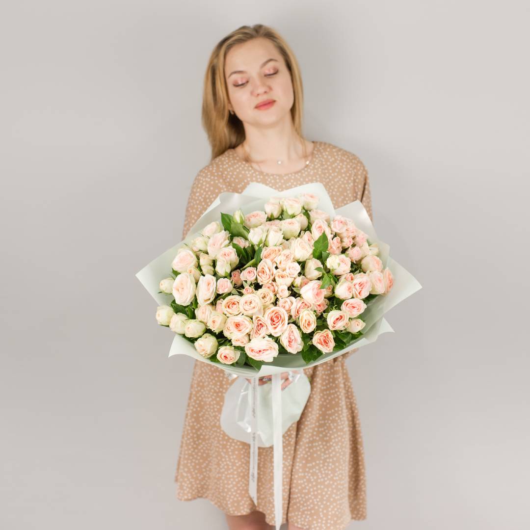 • Букет из кустовых пионовидных роз кремового цвета арт. 47537 Букет из кустовых пионовидных роз кремового цвета арт. 47537
