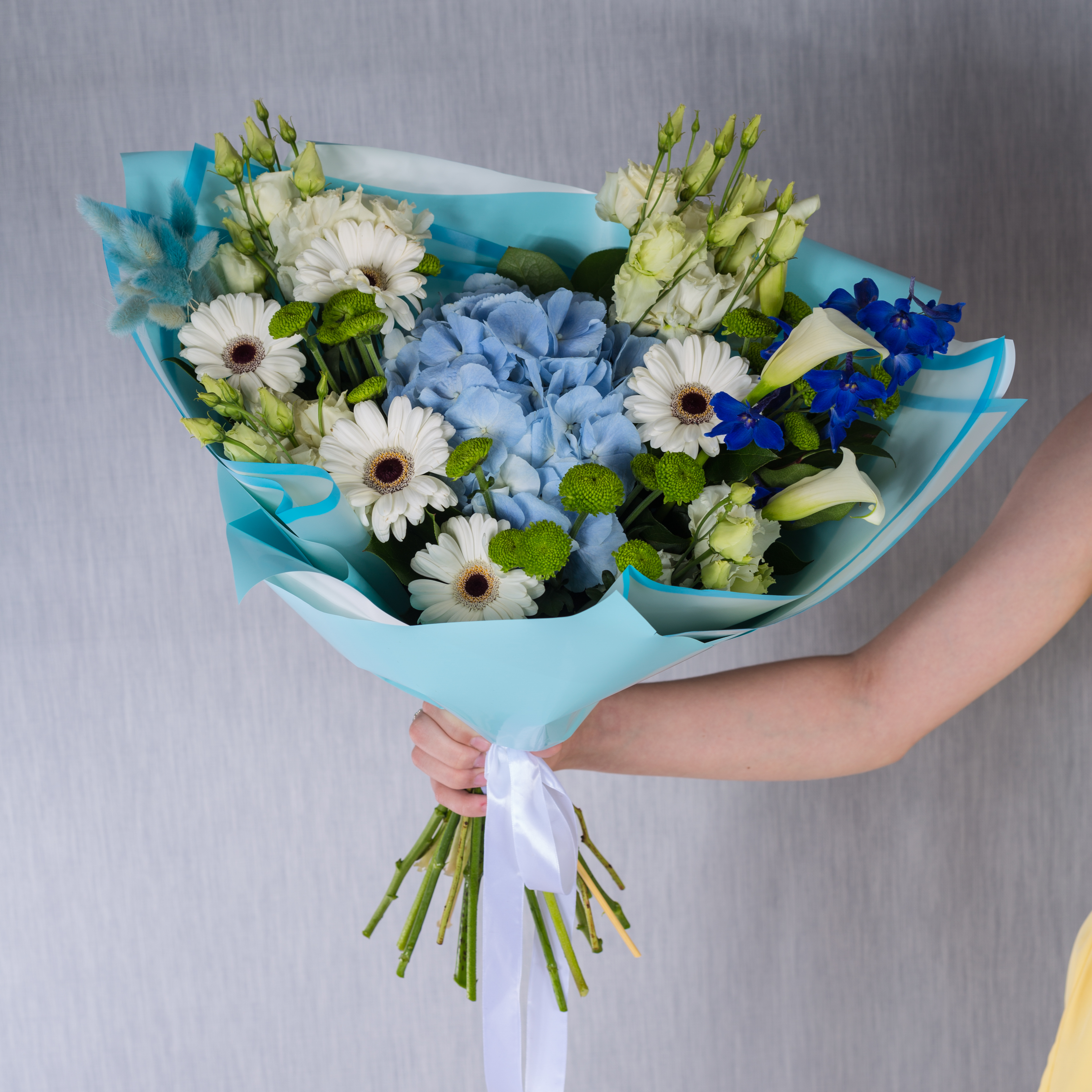 Букет с гортензией, гермини и калами "Прощальная улыбка августа" арт. 38375